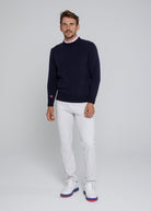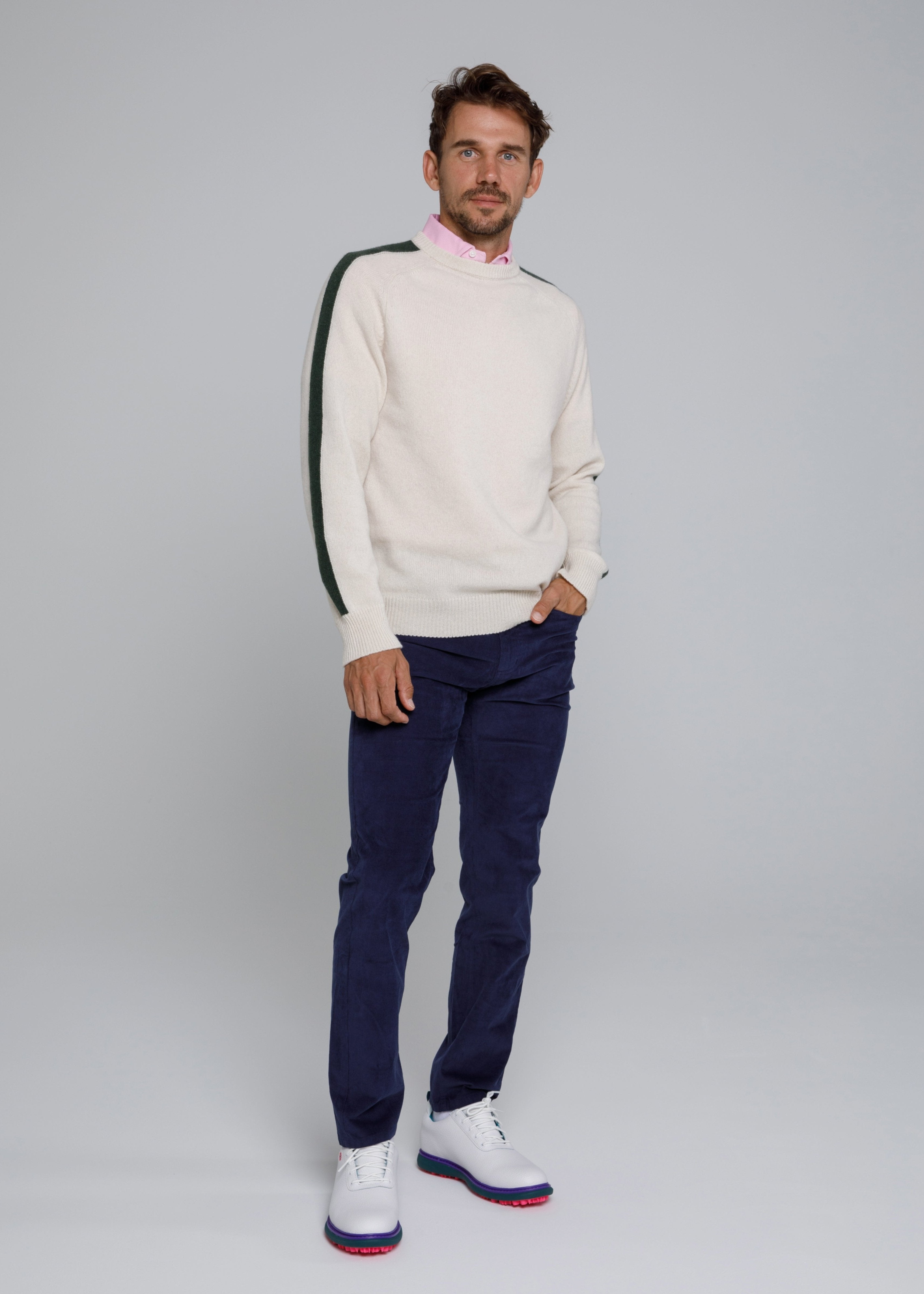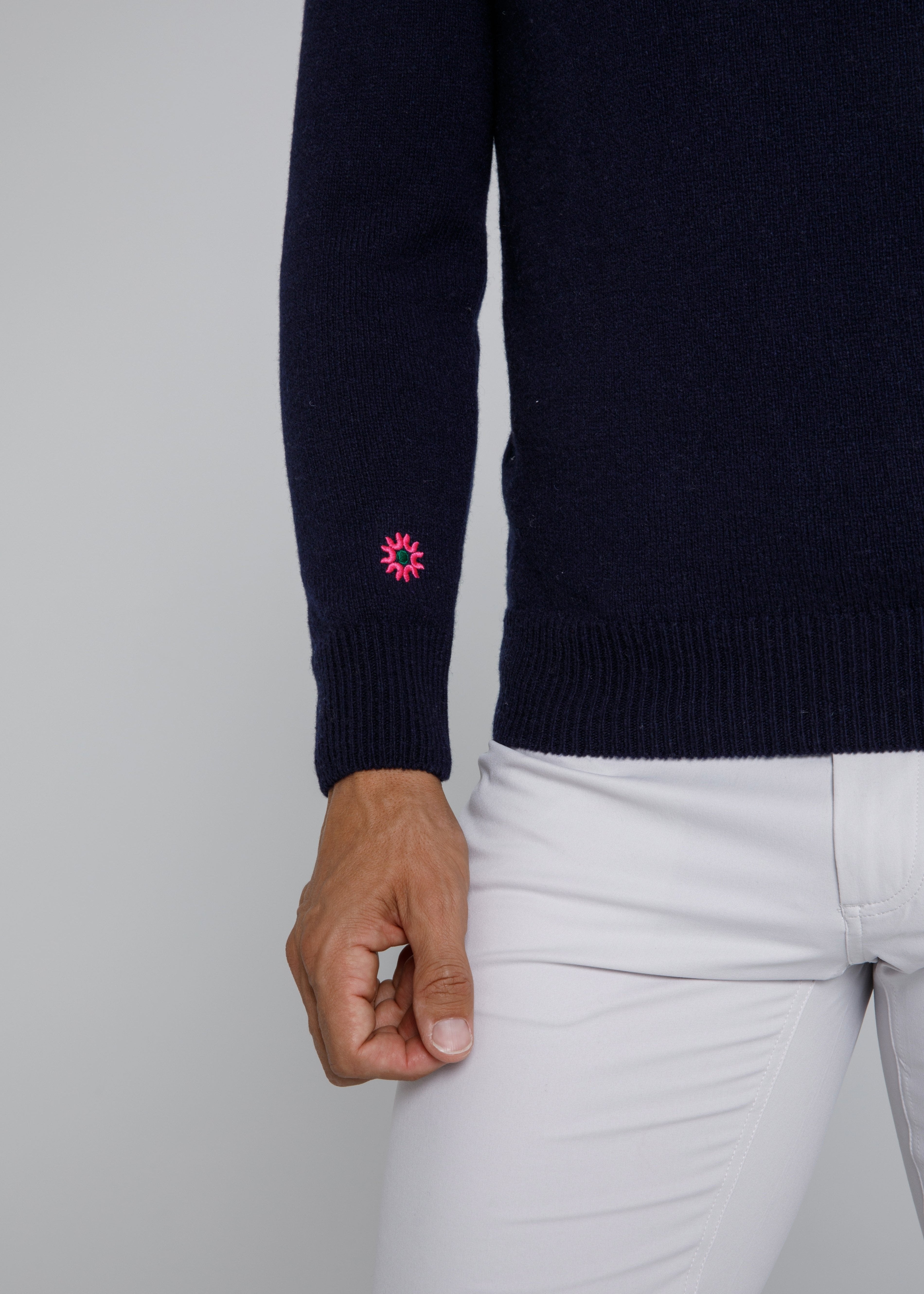 It has been said that our cashmere sweaters are "soft yet formidable". If you are looking for the perfect navy sweater for shoulder-season golf or just to take the edge off a cool Fall evening, this 100% Italian cashmere crew neck is the sweater for you.